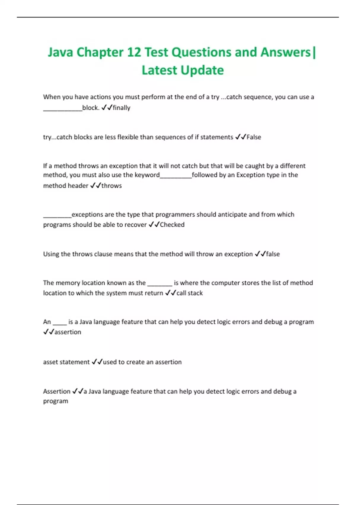 Java Chapter 12 Test Questions and Answers| Latest Update