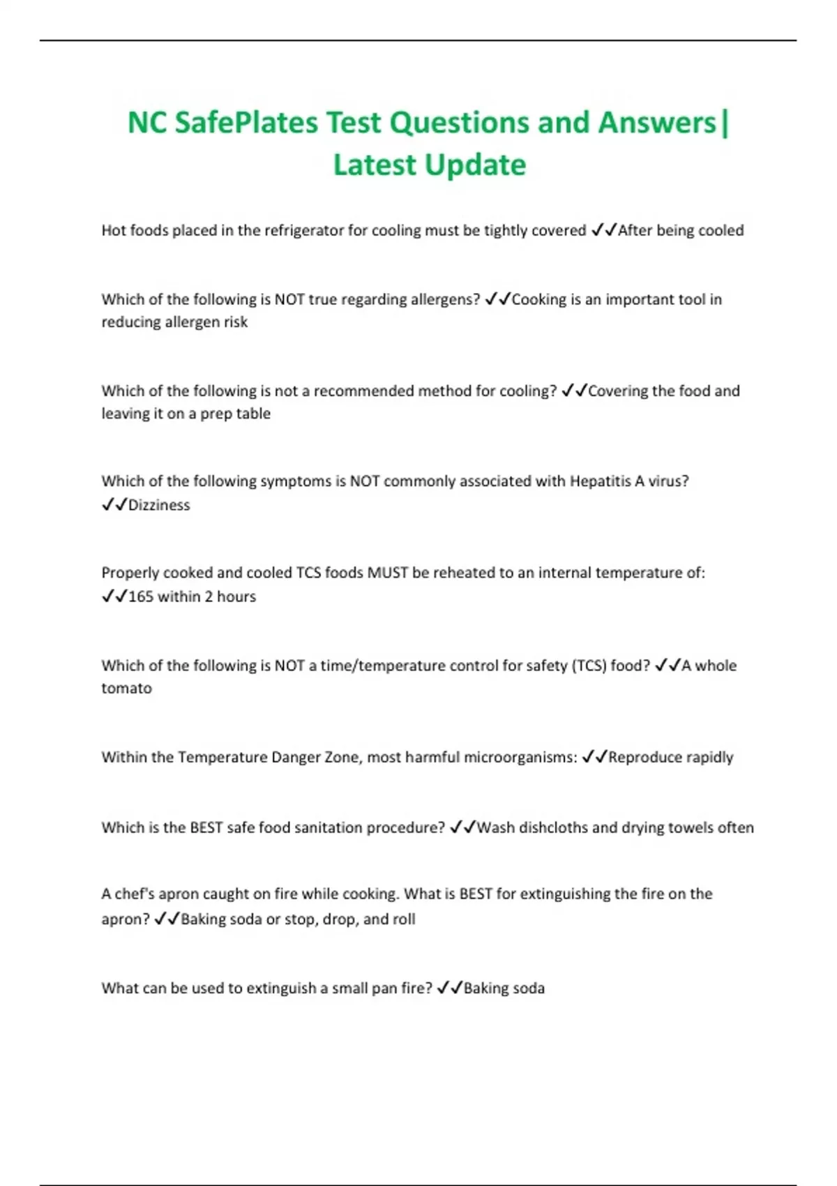 NC SafePlates Test Questions and Answers|