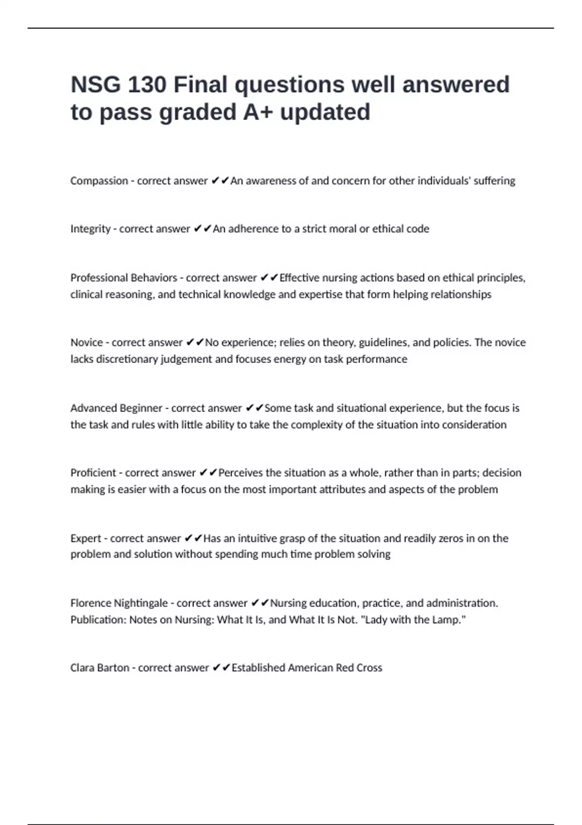 Professional Behaviors - correct answer ✔✔Effective nursing actions based on ethical principles,