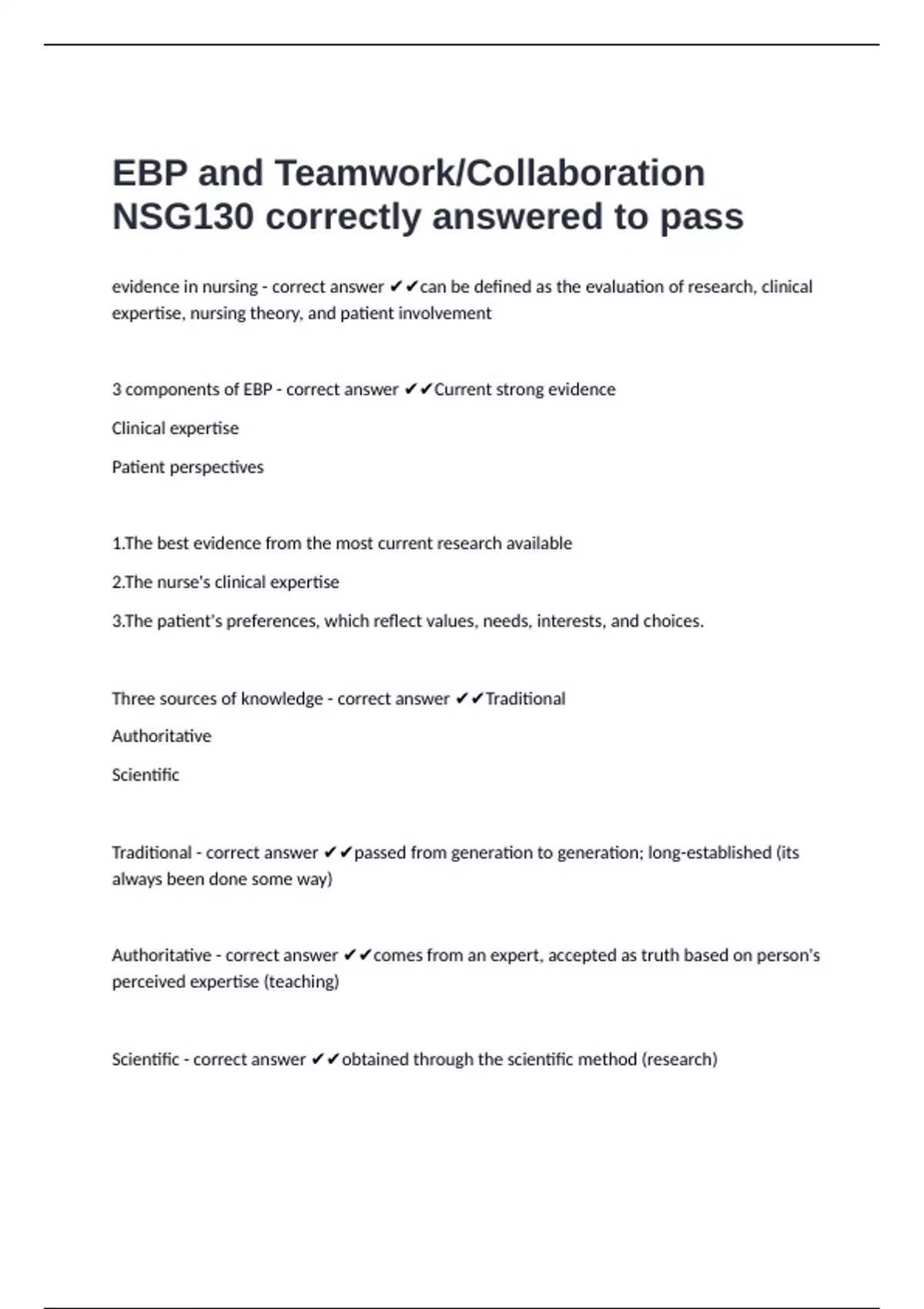 EBP and Teamwork/Collaboration NSG130 correctly answered to pass