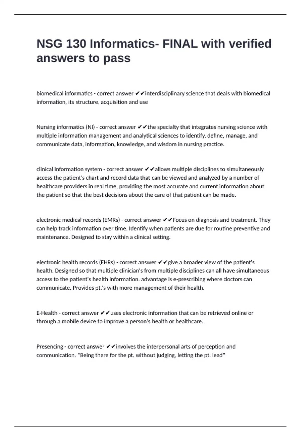 E-Health - correct answer ✔✔uses electronic information that can be retrieved online or