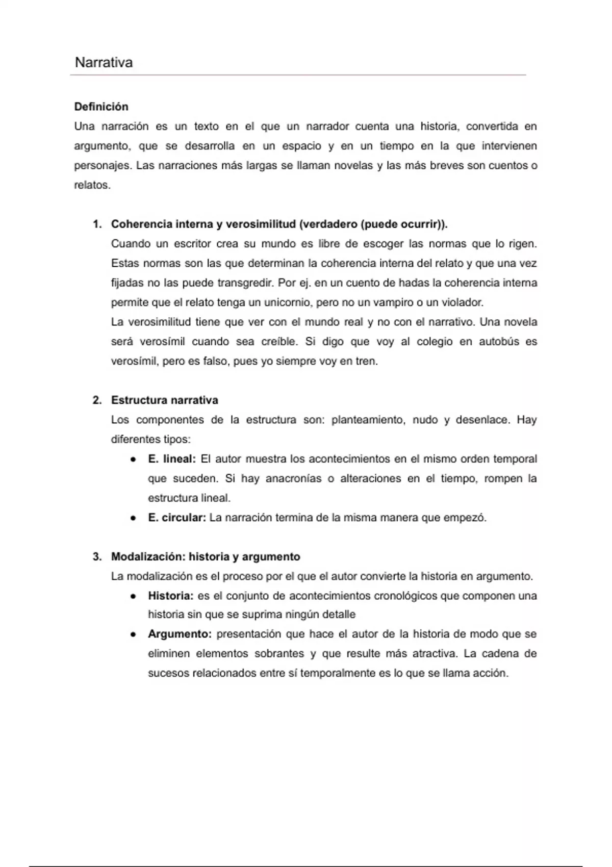 ●​ E. lineal: El autor muestra los acontecimientos en el mismo orden temporal