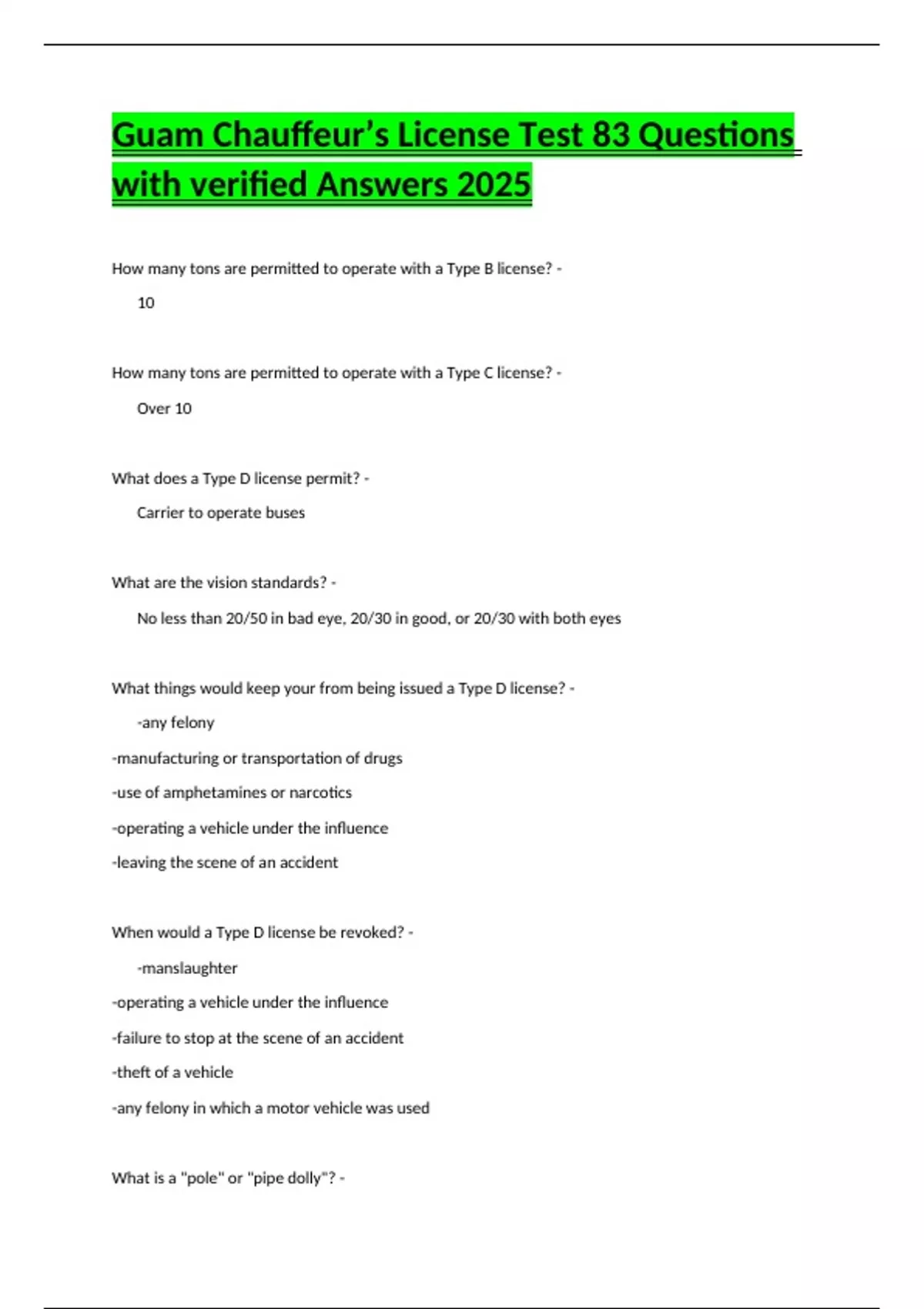 Guam Chauffeur’s License Test 83 Questions