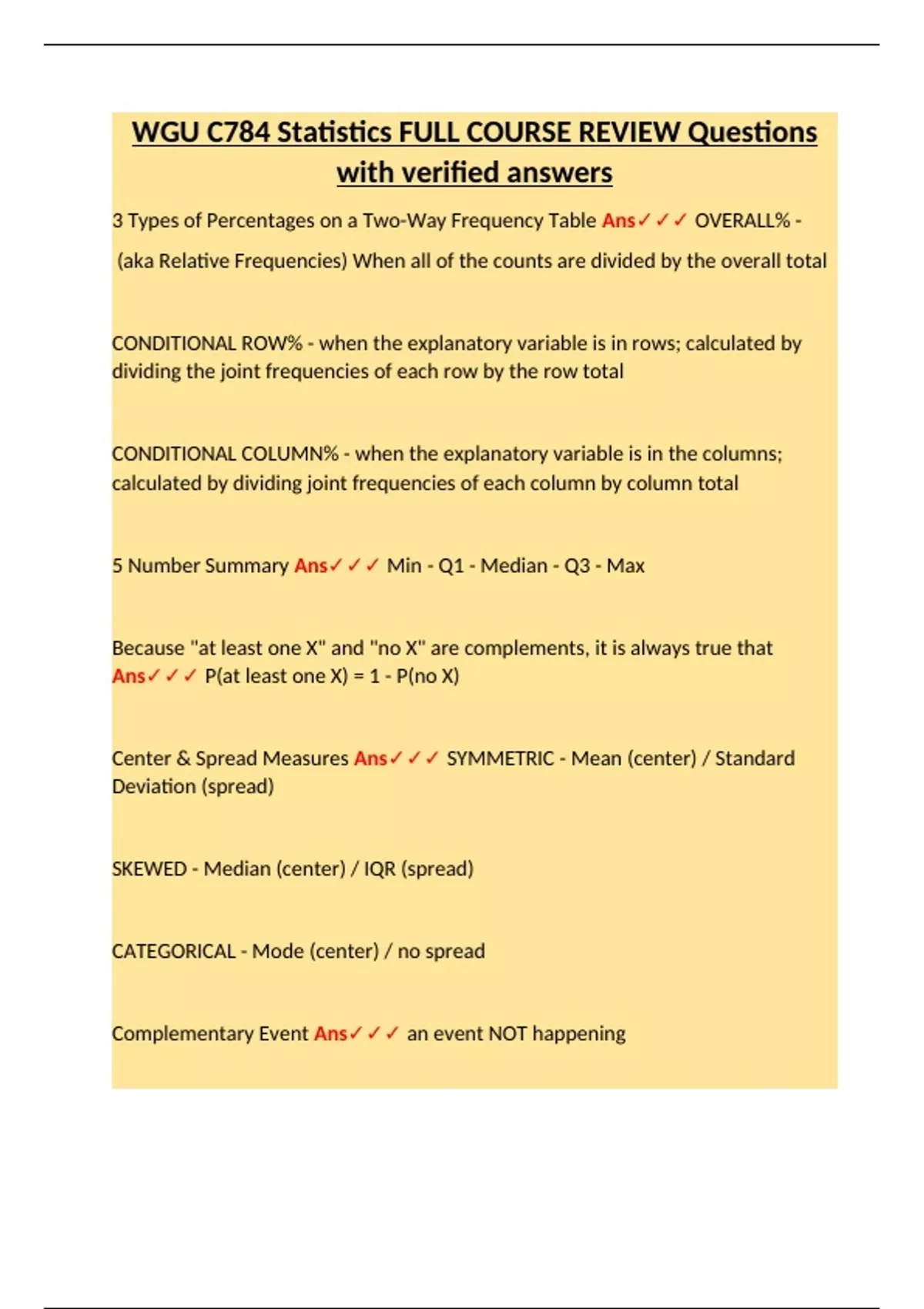 Center & Spread Measures Ans✓✓✓ SYMMETRIC - Mean (center) / Standard