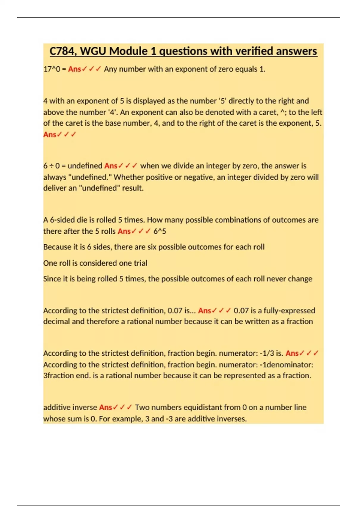 17^0 = Ans✓✓✓ Any number with an exponent of zero equals 1.