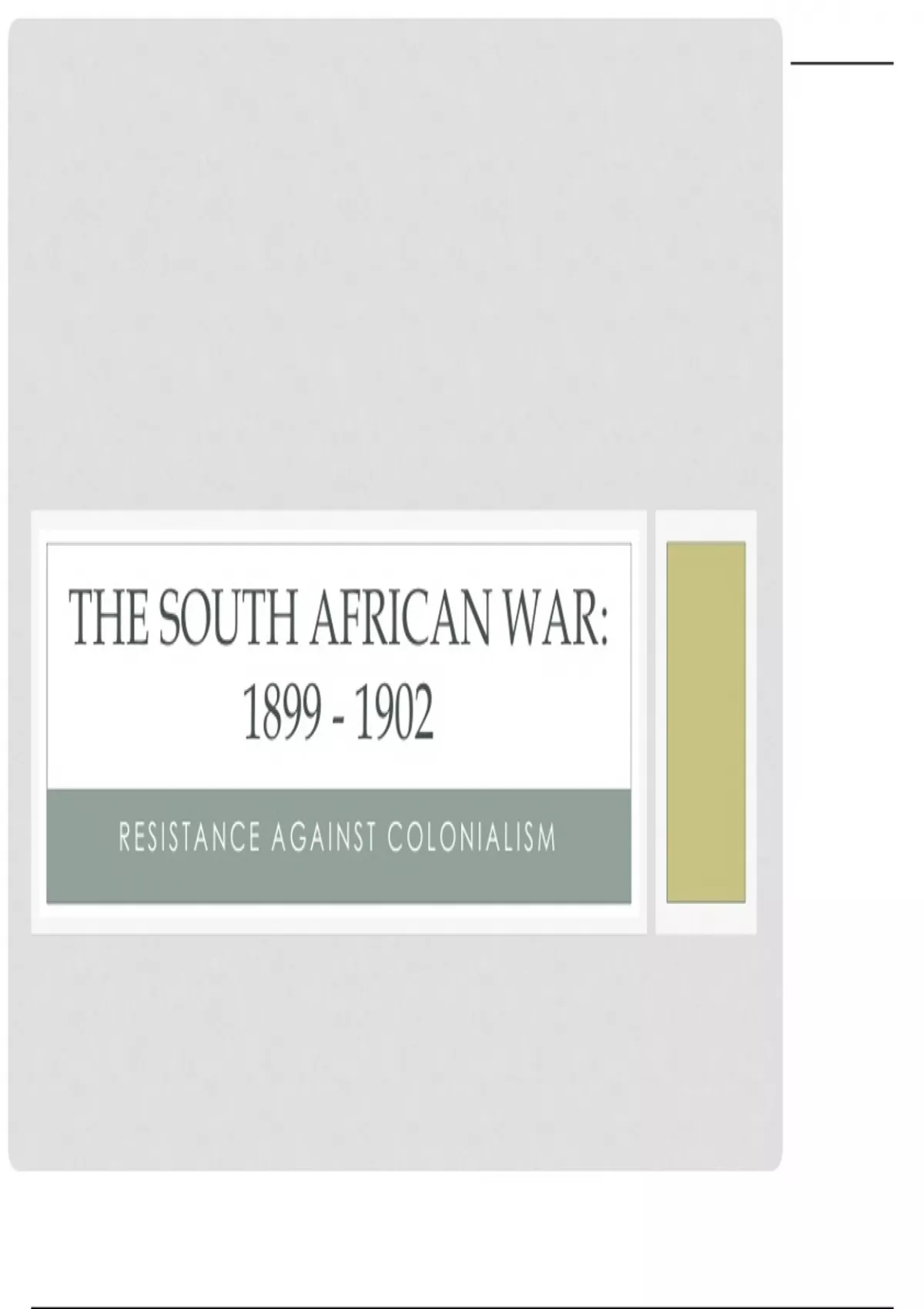 Summary The south African War RESISTANCE AGAINST COLONIALISM
