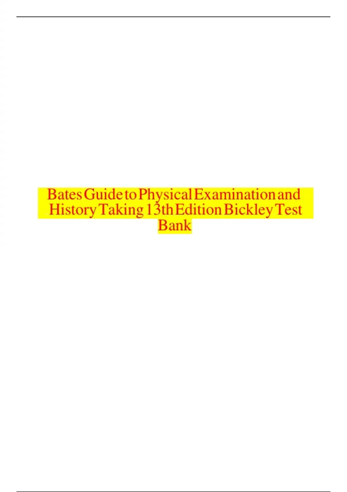 Bates’ Guide to Physical Examination and History Taking 13th Edition Bickley Test Bank.