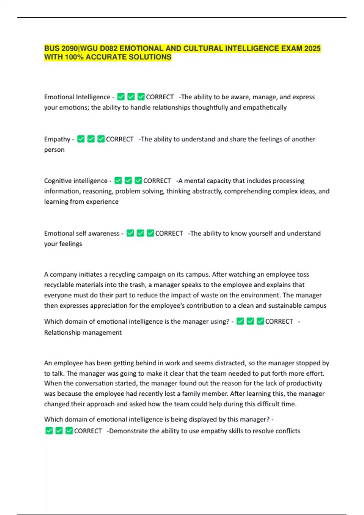 EQ - CORRECT -a measure of emotional intelligence