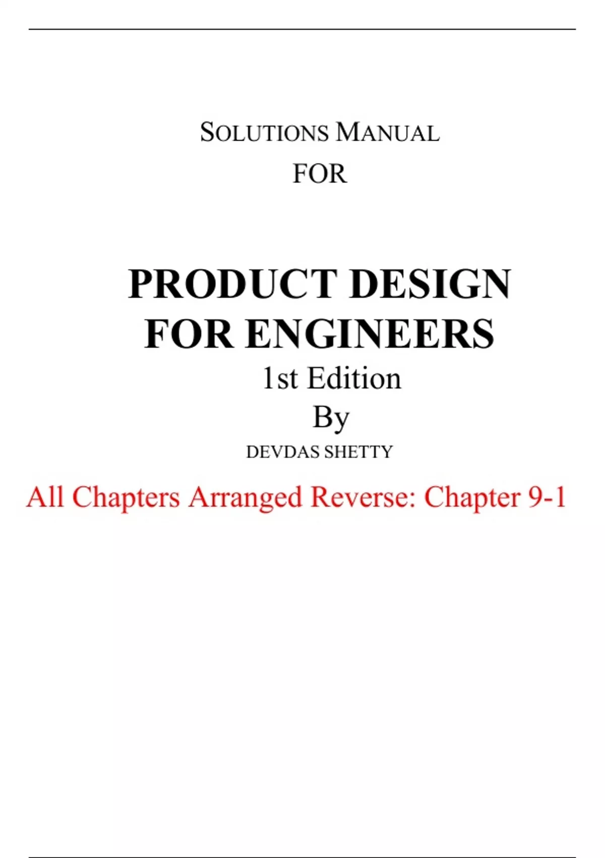 This Is Original Solution Manual All Other Solutions Manual In The Market Are Fake/Old Solutions Manual For Product Design For Engineers 1st Edition By Devdas Shetty