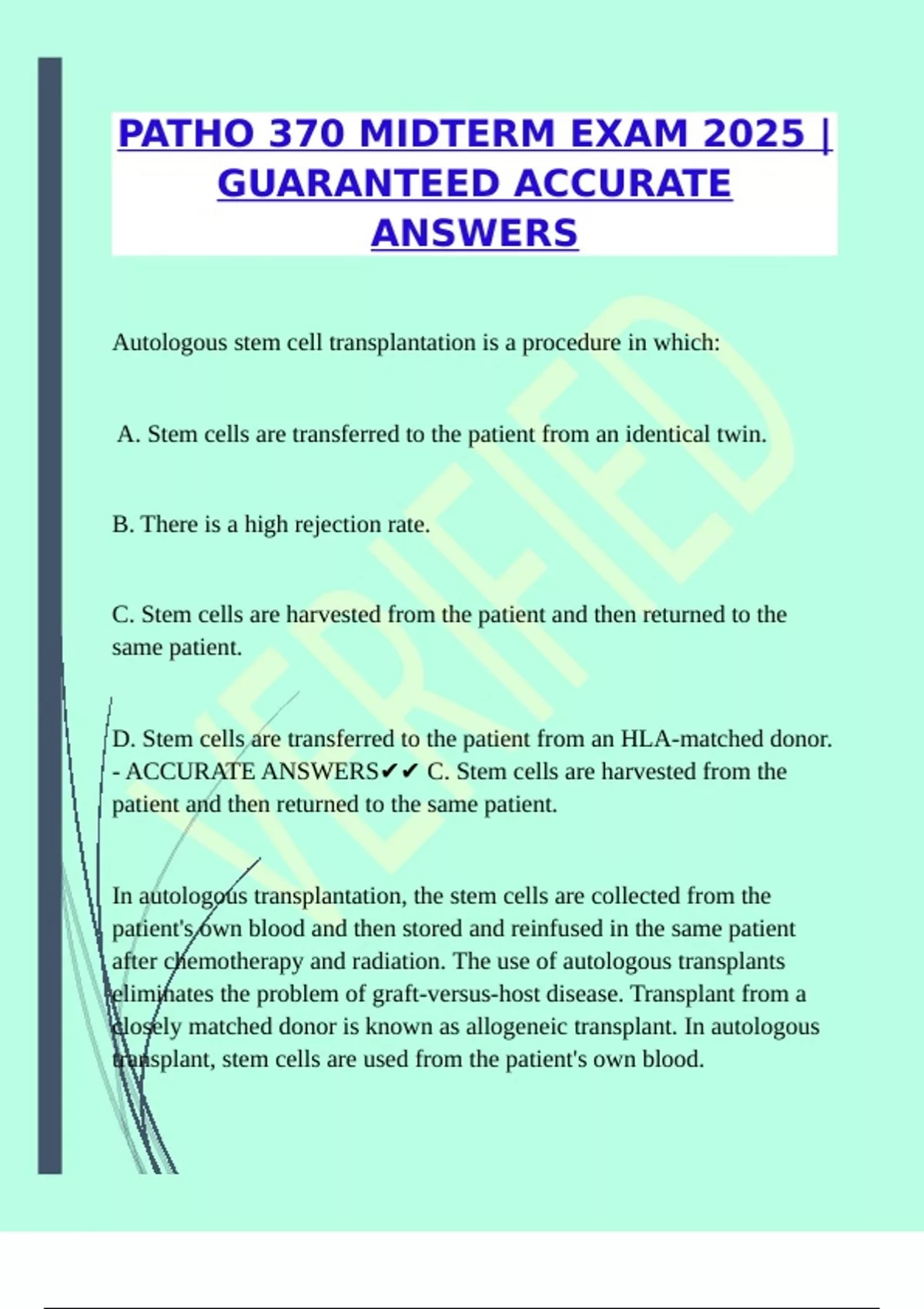 - ACCURATE ANSWERS✔✔ C. Stem cells are harvested from the