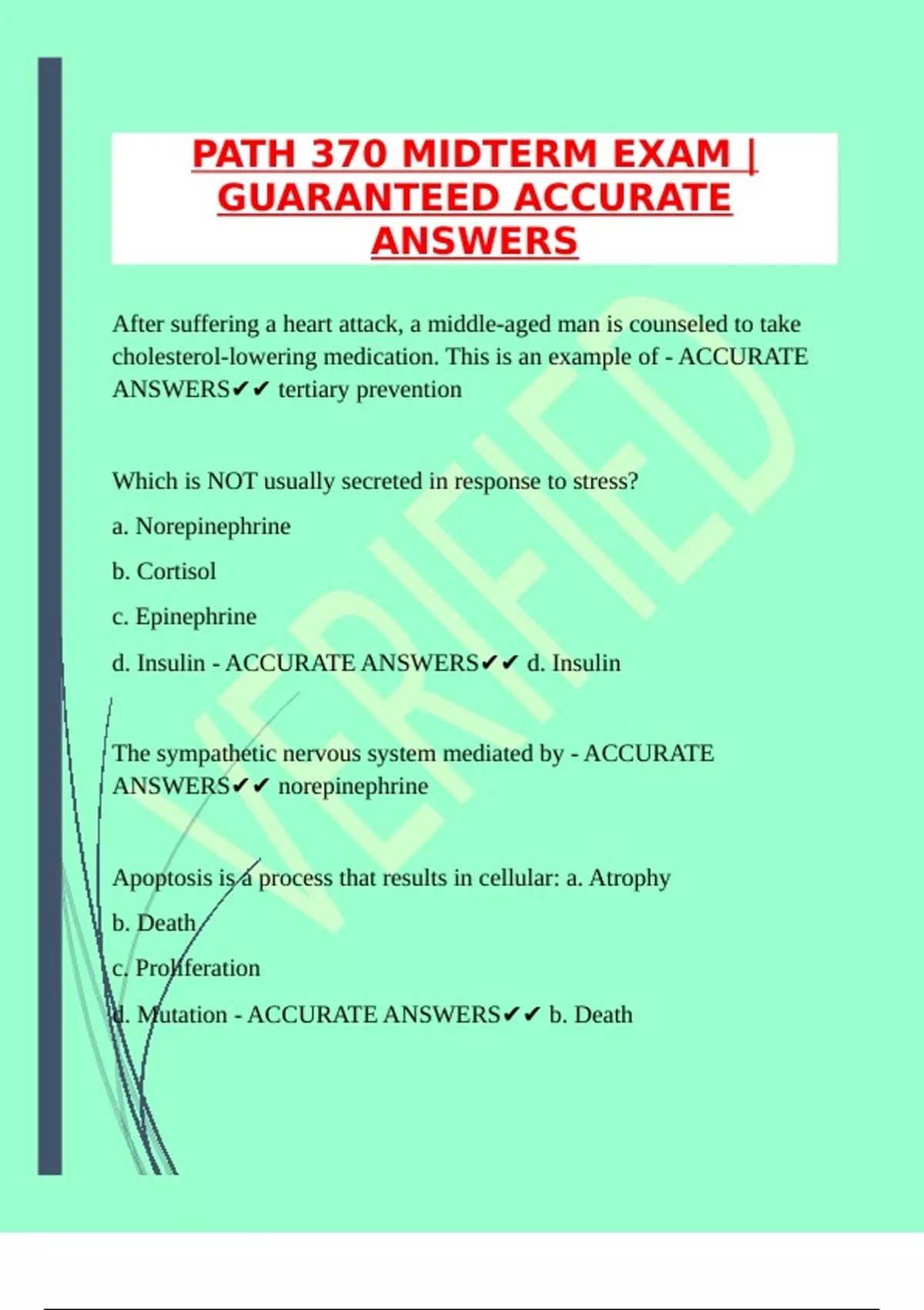PATH 370 MIDTERM EXAM |GUARANTEED ACCURATE ANSWERS