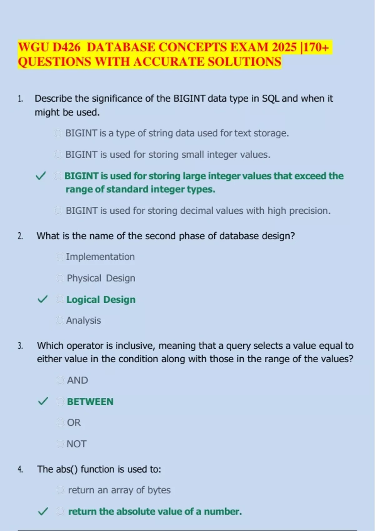 QUESTIONS WITH ACCURATE SOLUTIONS