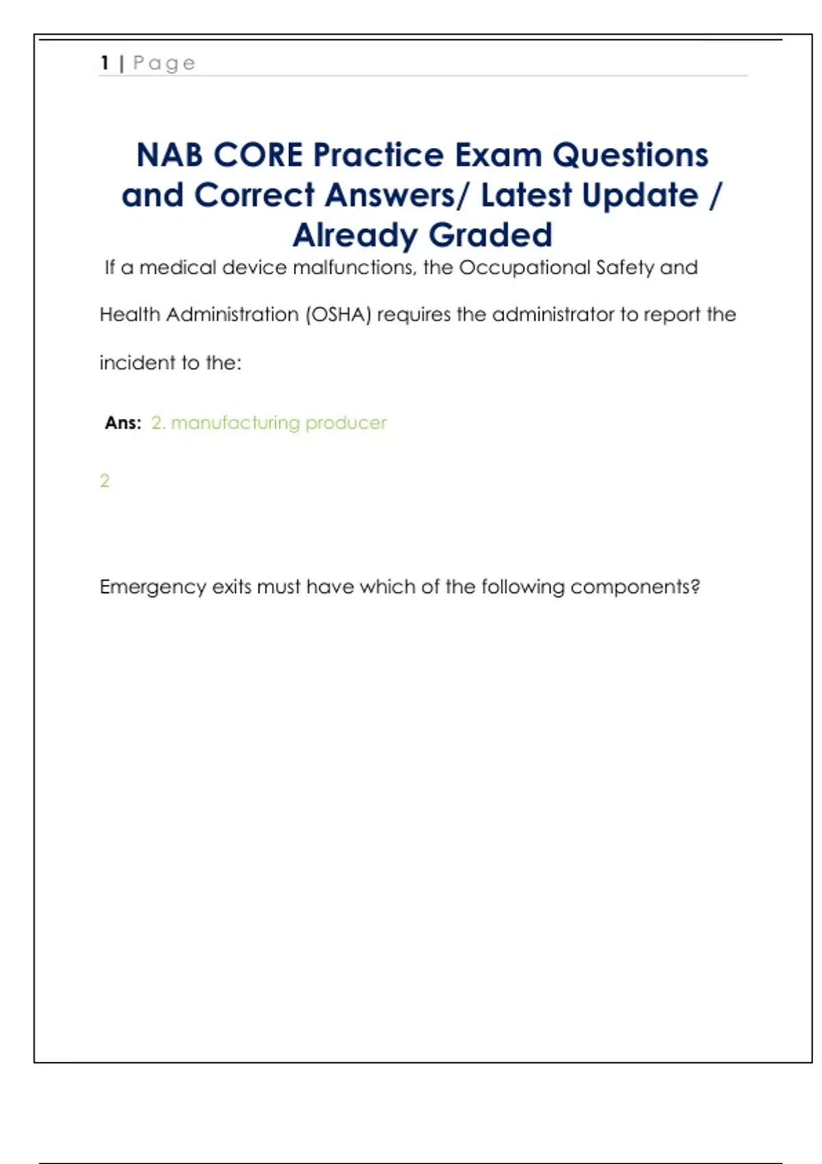 NAB CORE Practice Exam Questions