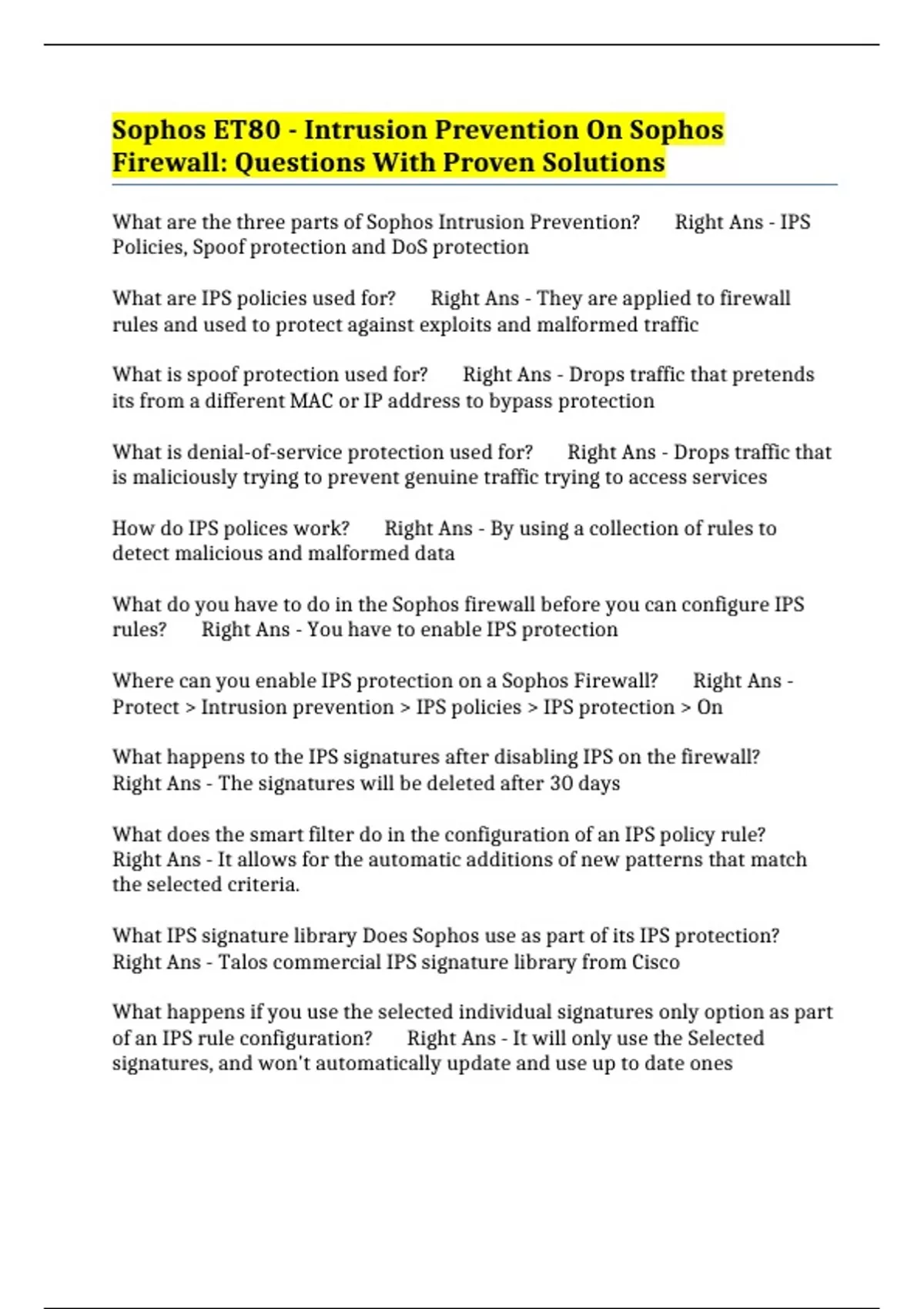 Sophos ET80 - Intrusion Prevention On Sophos Firewall: Questions With Proven Solutions