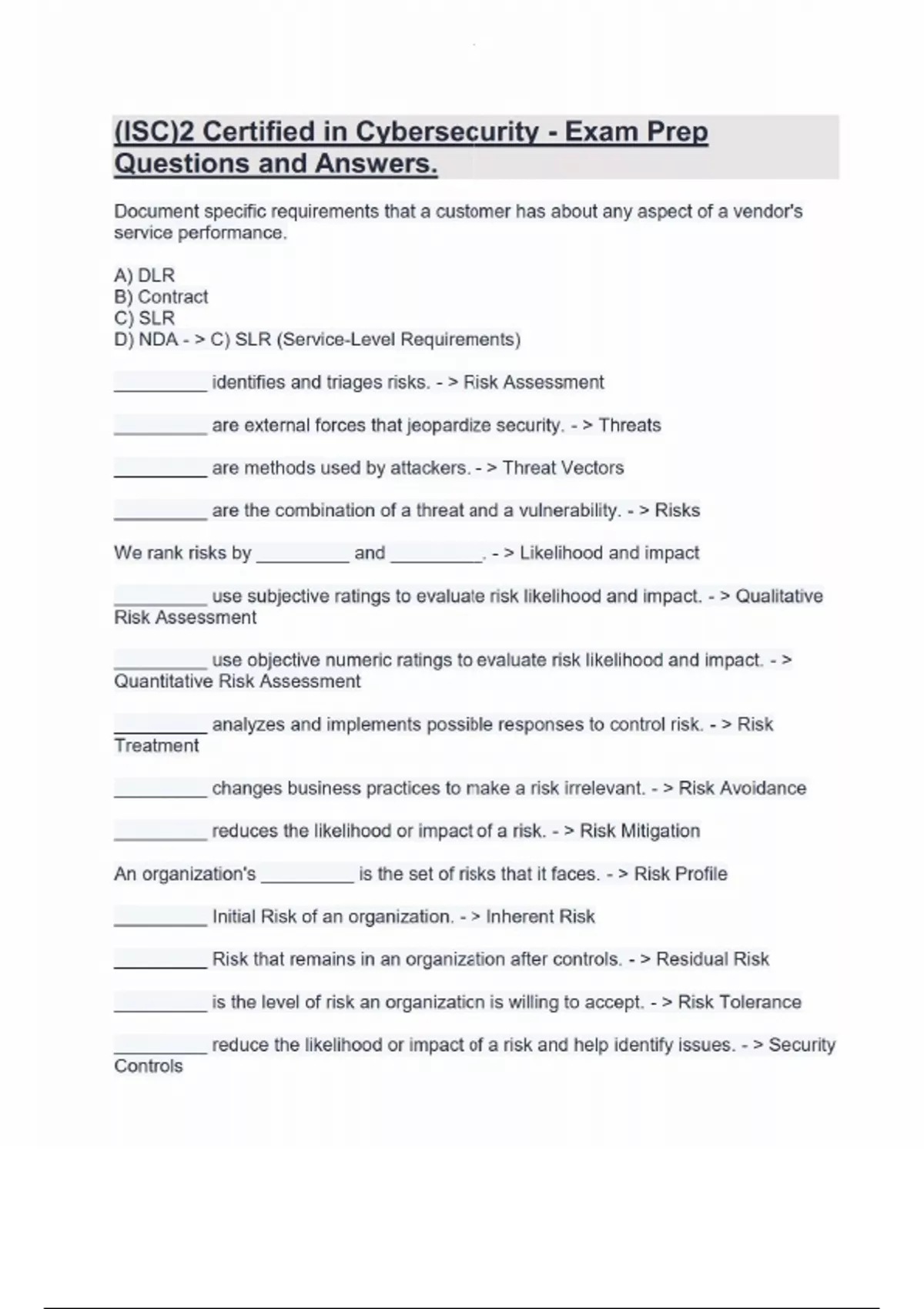 (ISC)2 Certified in Cybersecurity - Exam Prep Questions and Answers.