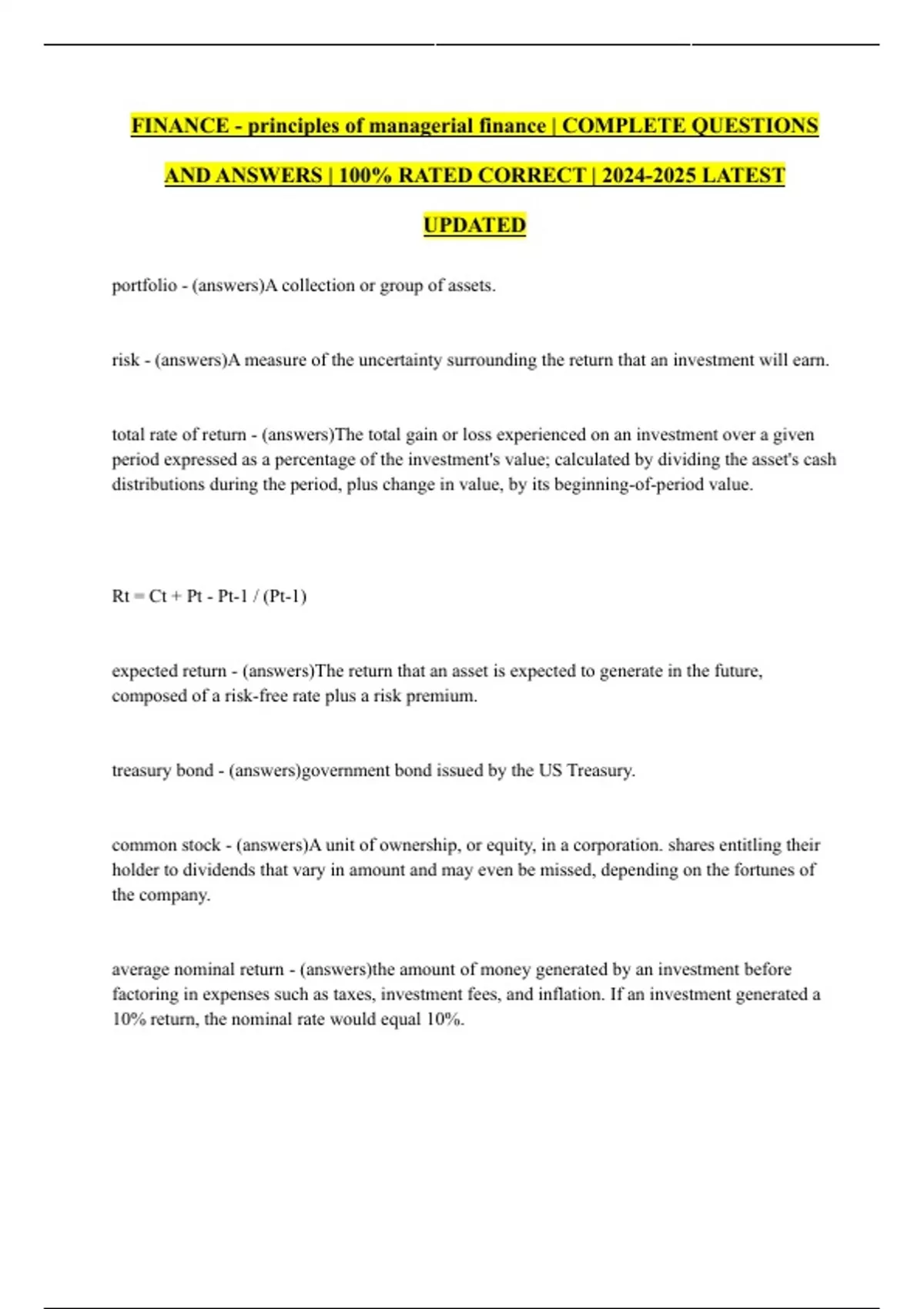 Define return, and describe how to find the total rate of return on an investment - (answers)-