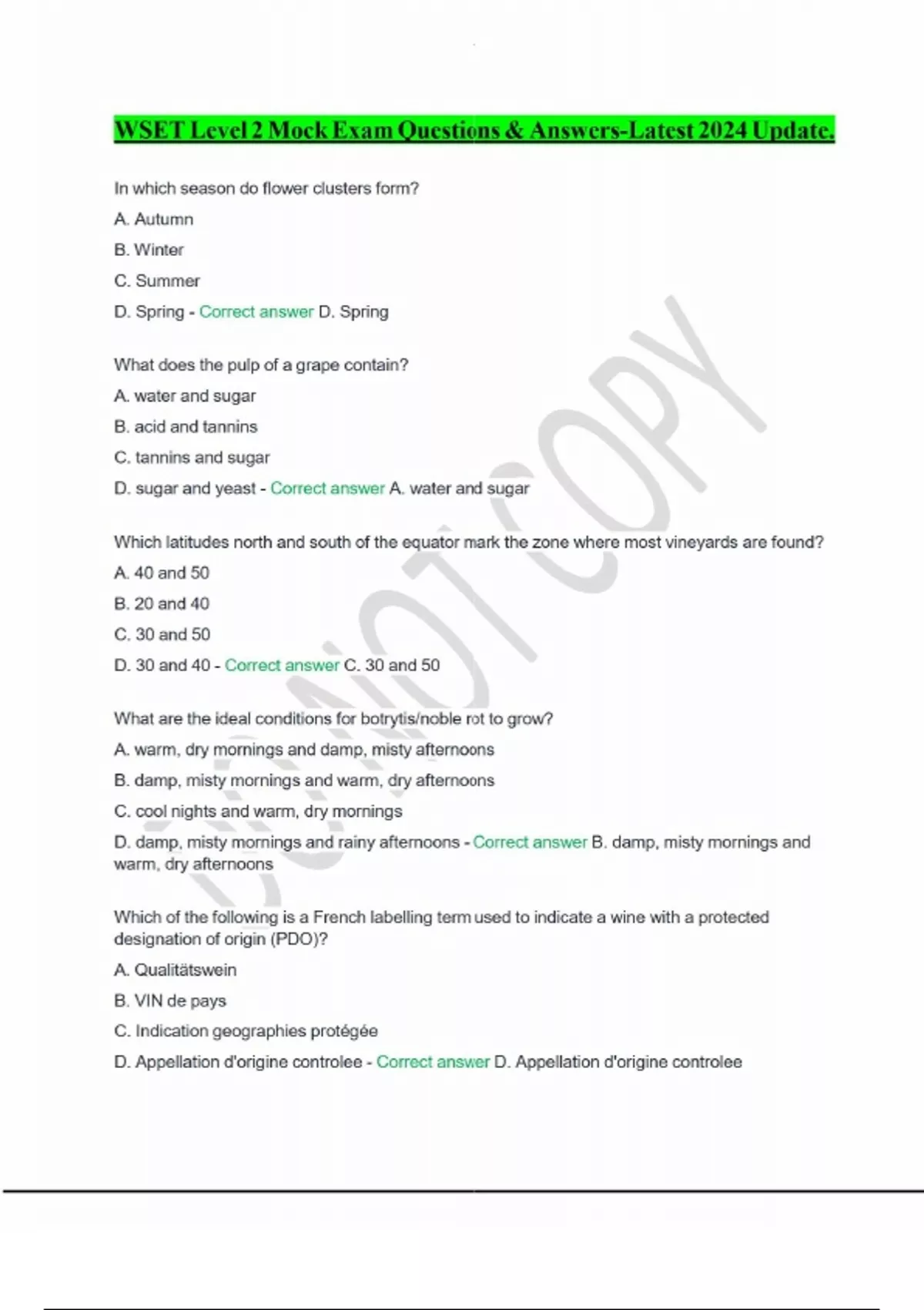 WSET Level 2 Mock Exam Questions & Answers-Latest 2025 Update.WSET Level 2 Mock Exam Questions & Answers-Latest 2025 Update.