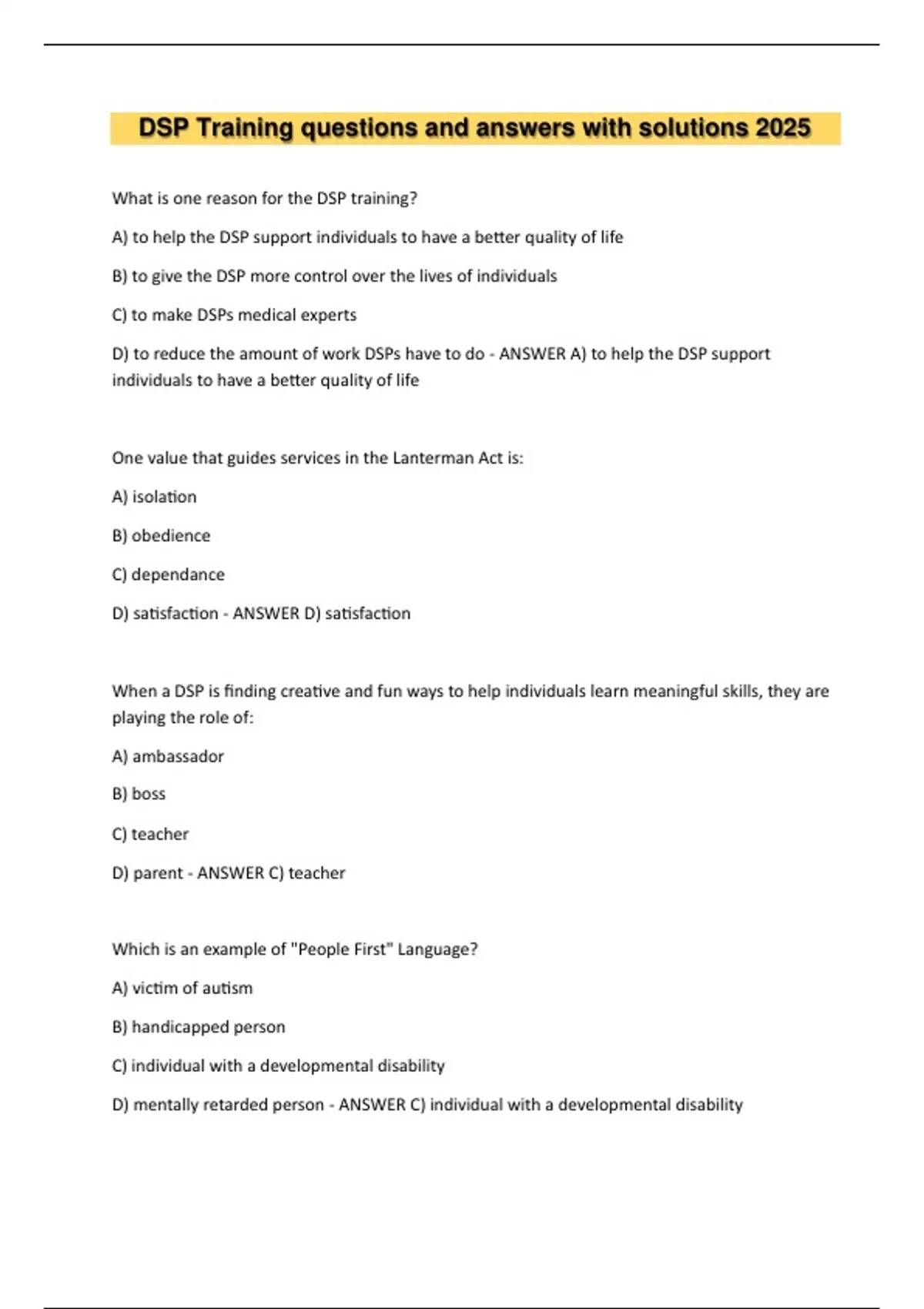 ANSWER B) the DSP provides services and supports to assist the individual to achieve their goals