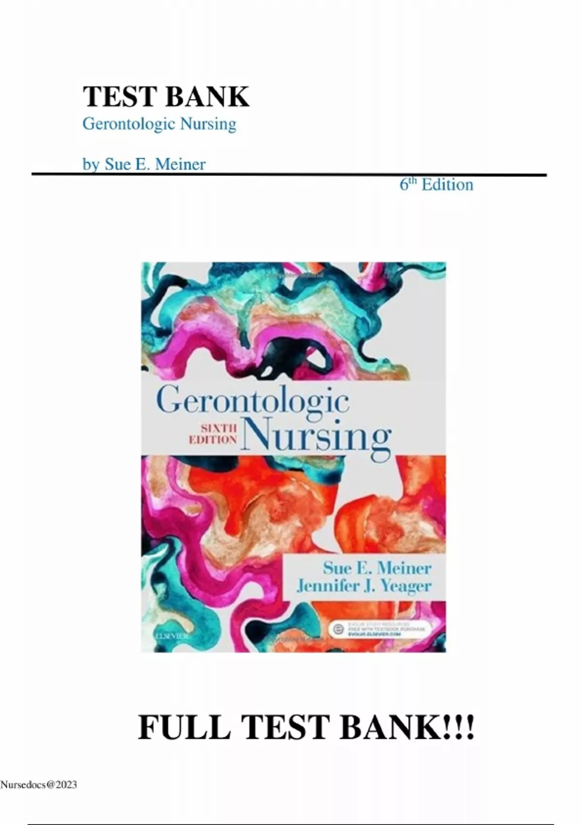 Test Bank for Gerontologic Nursing, 6th Edition by Sue E. Meiner Jennifer J. Yeager Chapter 1-29 | All Chapters, Graded 100% A+