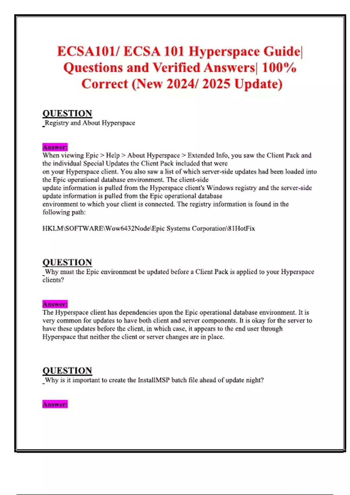 ECSA101 ECSA 101 Hyperspace Guide Questions and Verified Answers 100% Correct (New Update)