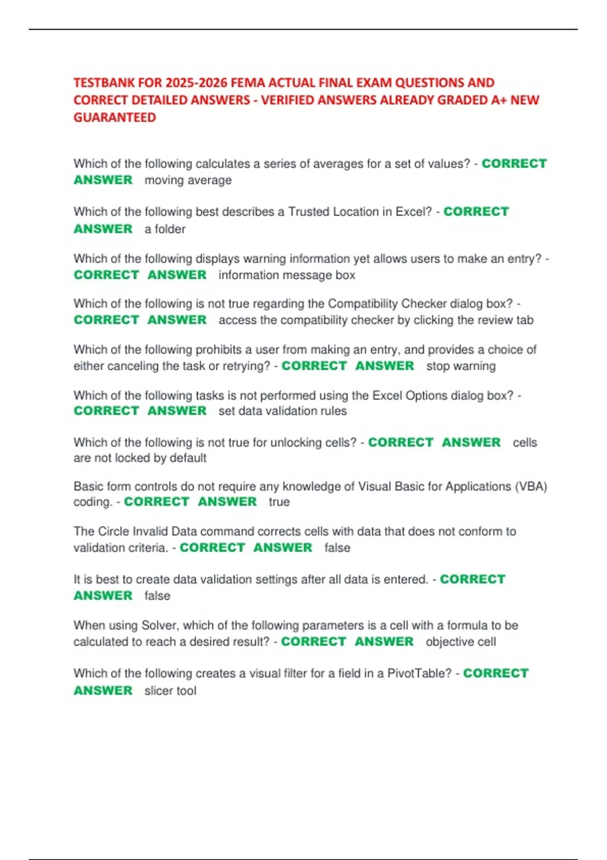 B15. Accept the solution. - CORRECT ANSWER In the Data Ribbon Tab in the