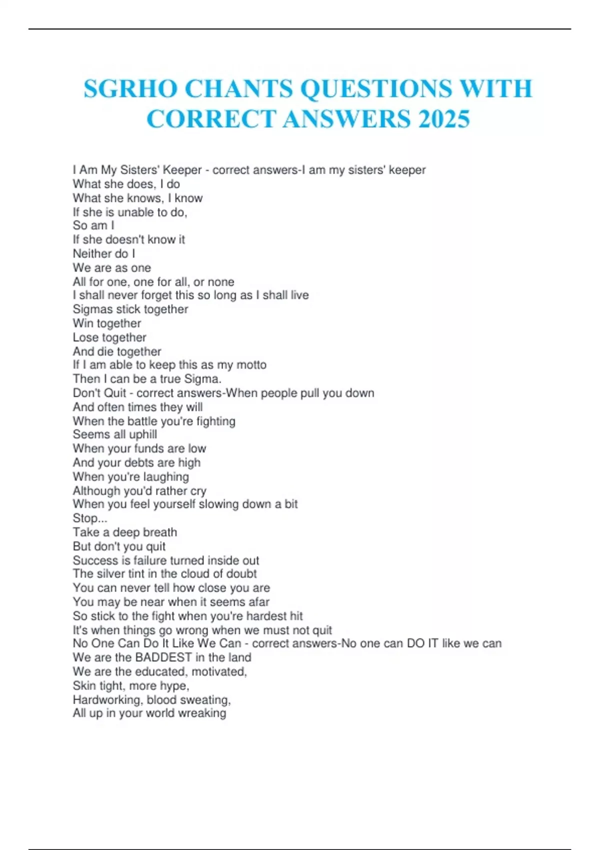 SGRHO CHANTS QUESTIONS WITH