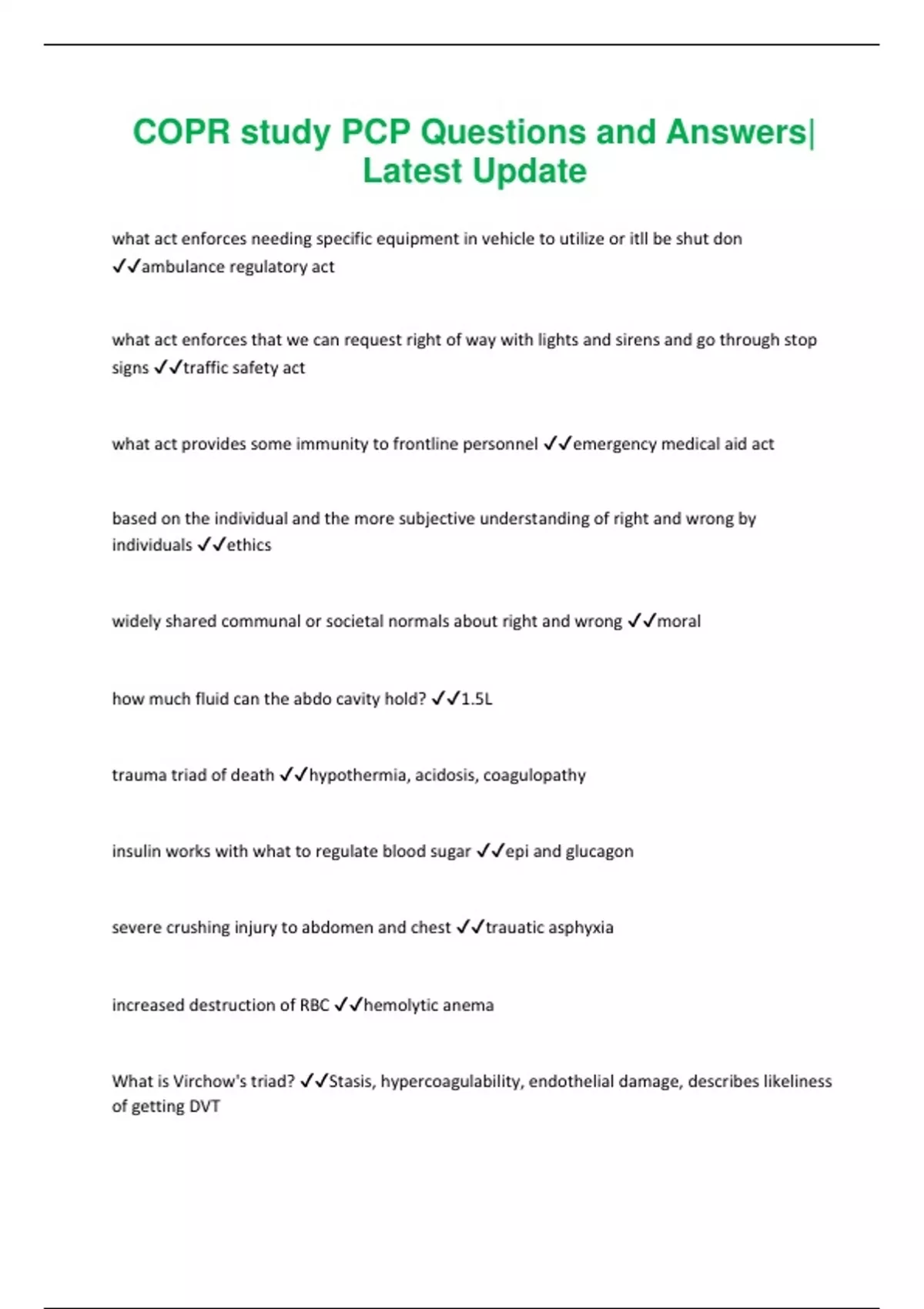 COPR study PCP Questions and Answers|
