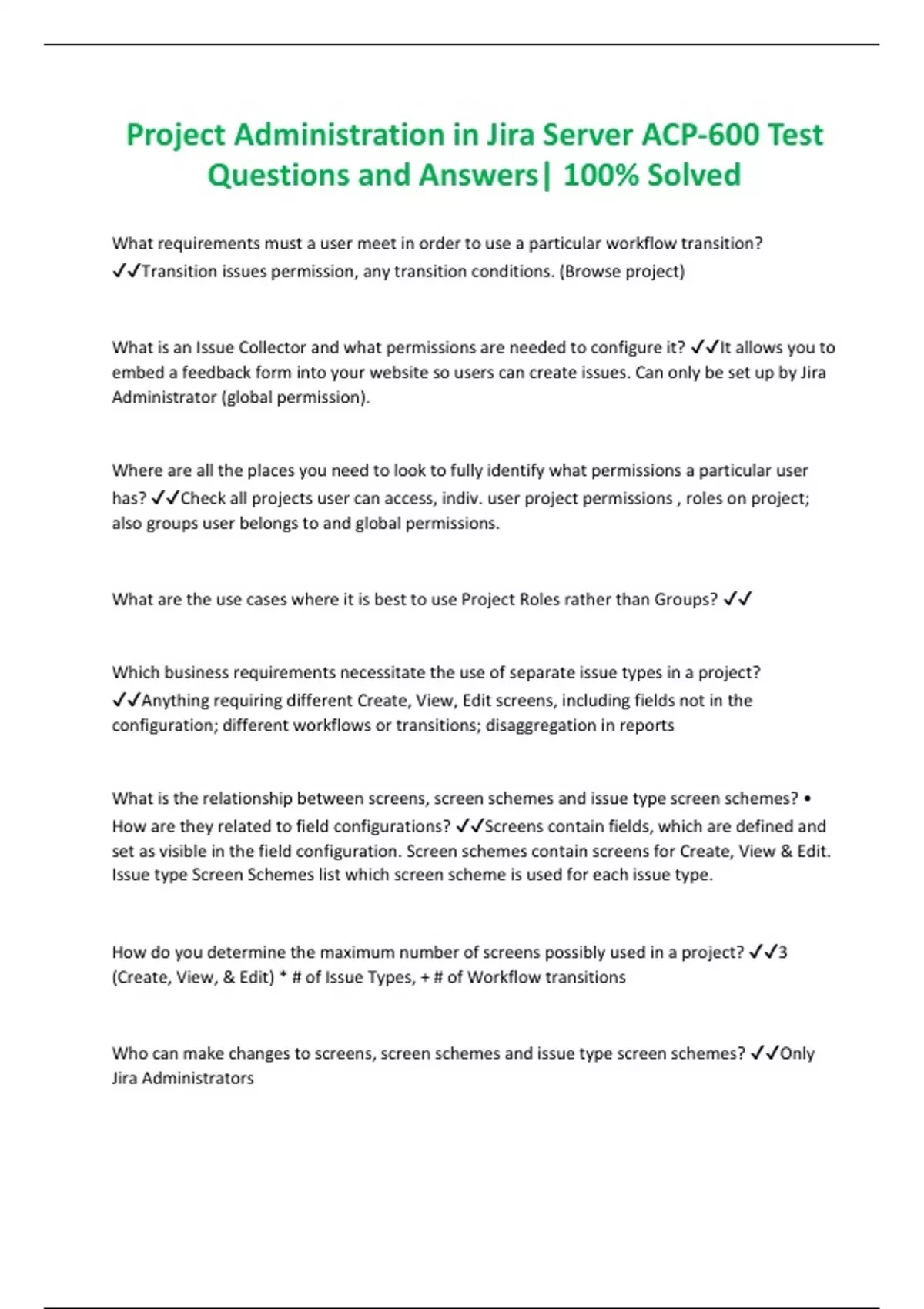 Project Administration in Jira Server ACP-600 Test Questions and Answers| 100% Solved