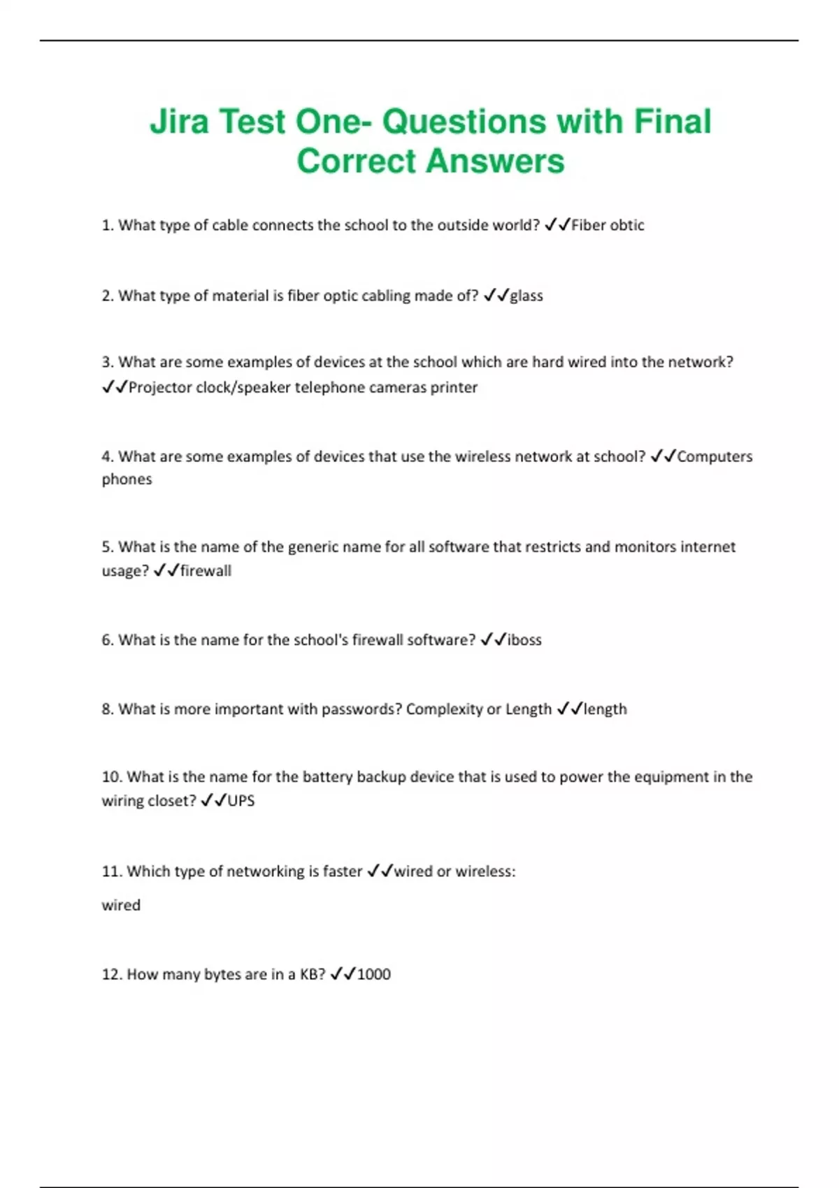 1. What type of cable connects the school to the outside world? ✔️✔️Fiber obtic