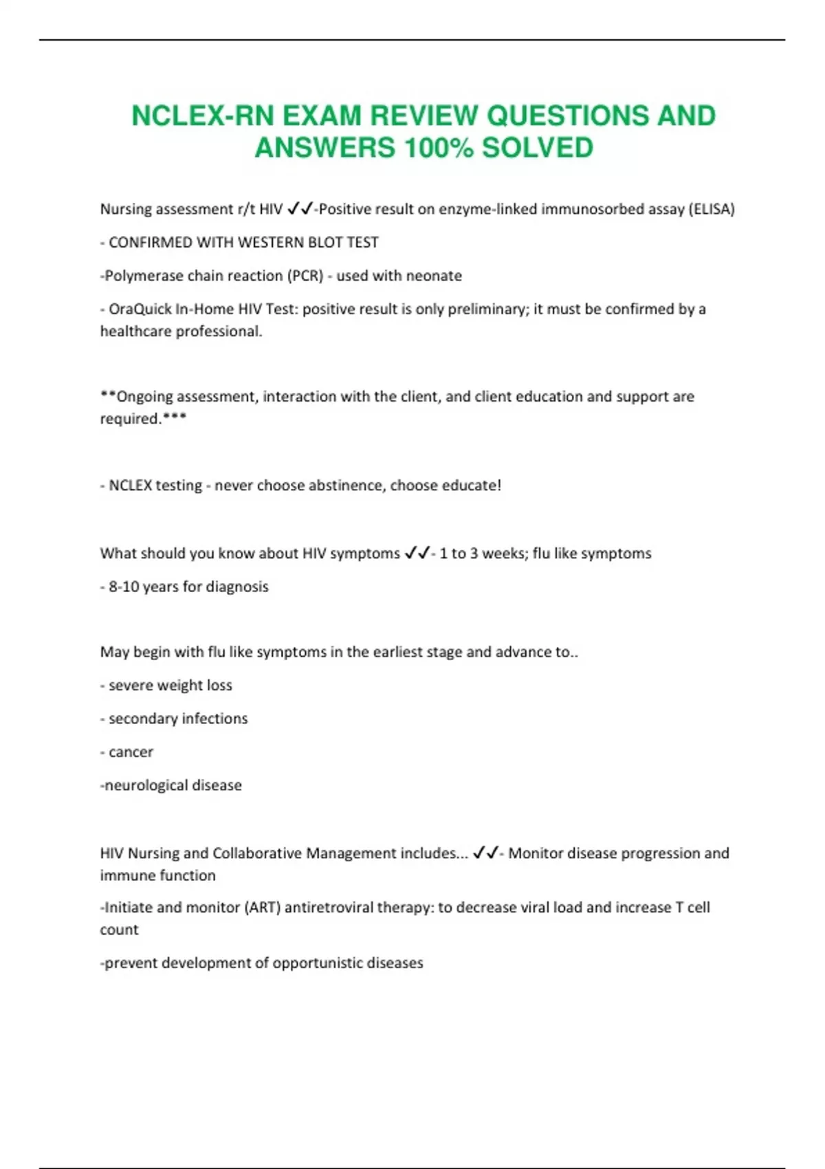Nursing assessment r/t HIV ✔️✔️-Positive result on enzyme-linked immunosorbed assay (ELISA)