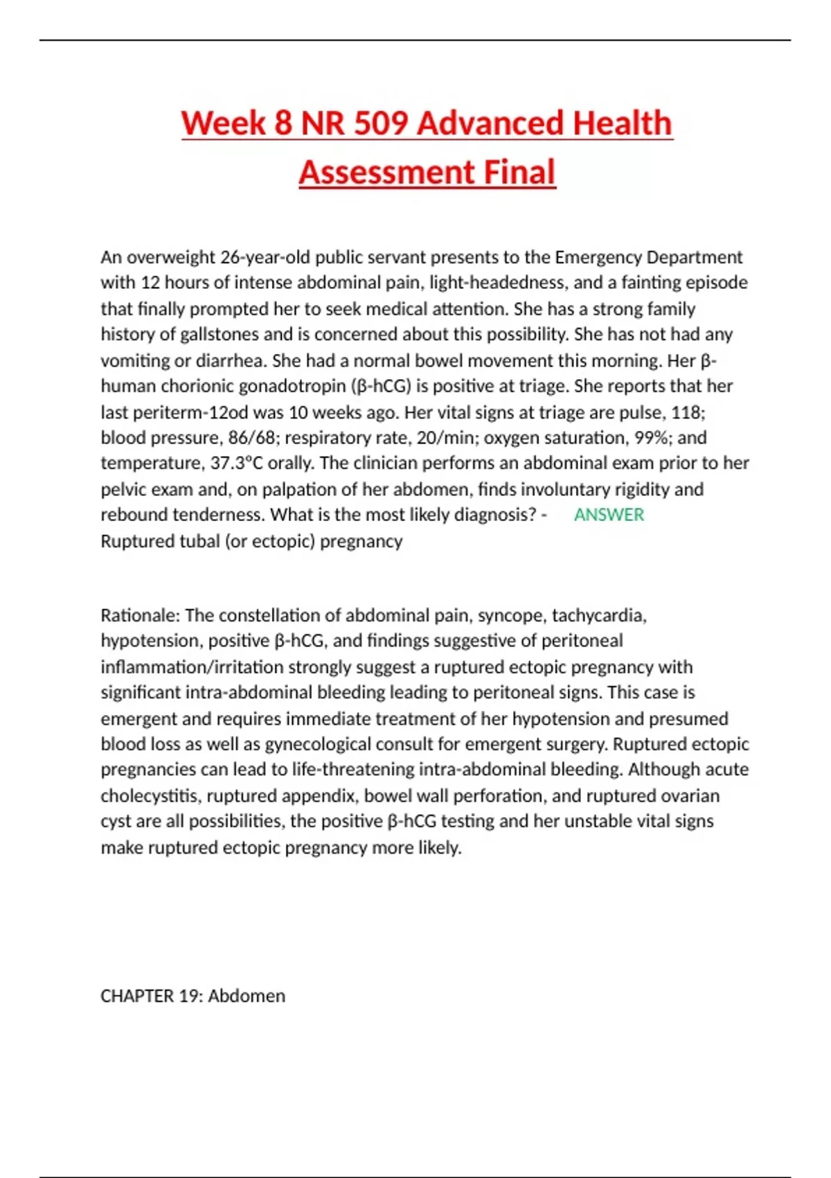cyst are all possibilities, the positive β-hCG testing and her unstable vital signs