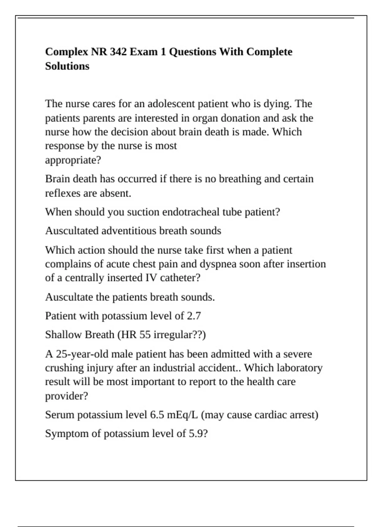 Complex NR 342 Exam 1 Questions With Complete
