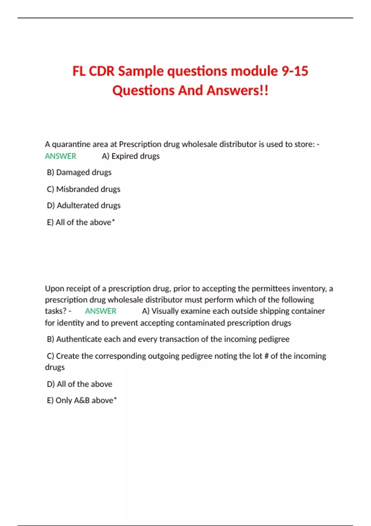 FL CDR Sample questions module 9-15