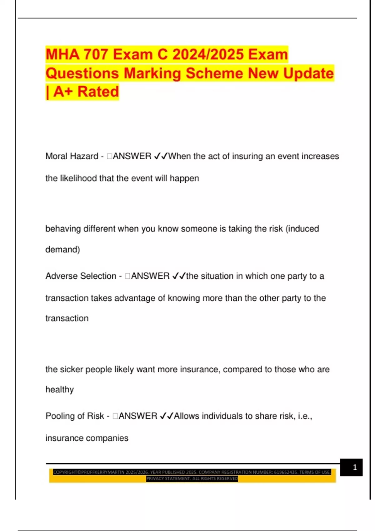 MHA 707 Exam C 2024/2025 Exam Questions Marking Scheme New Update | A+ Rated Moral Hazard -