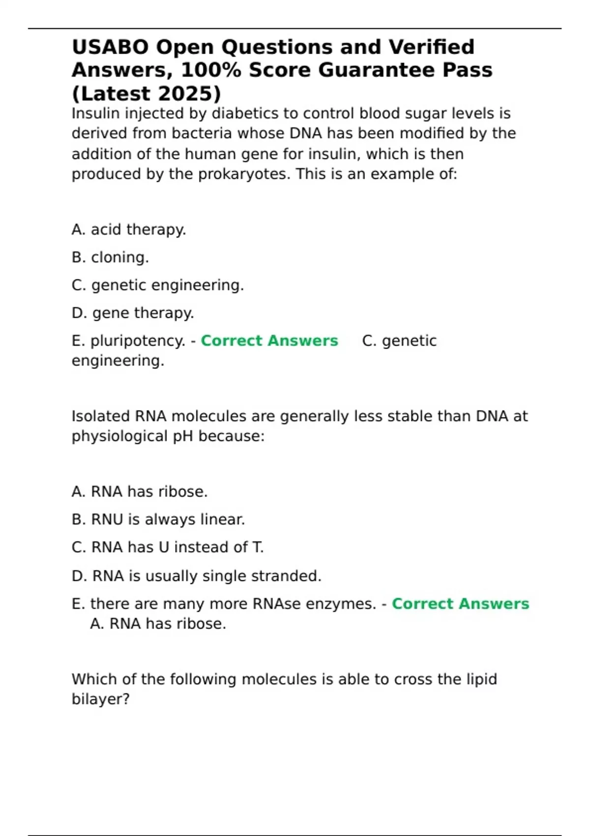 ,USABO Open Questions and Verified