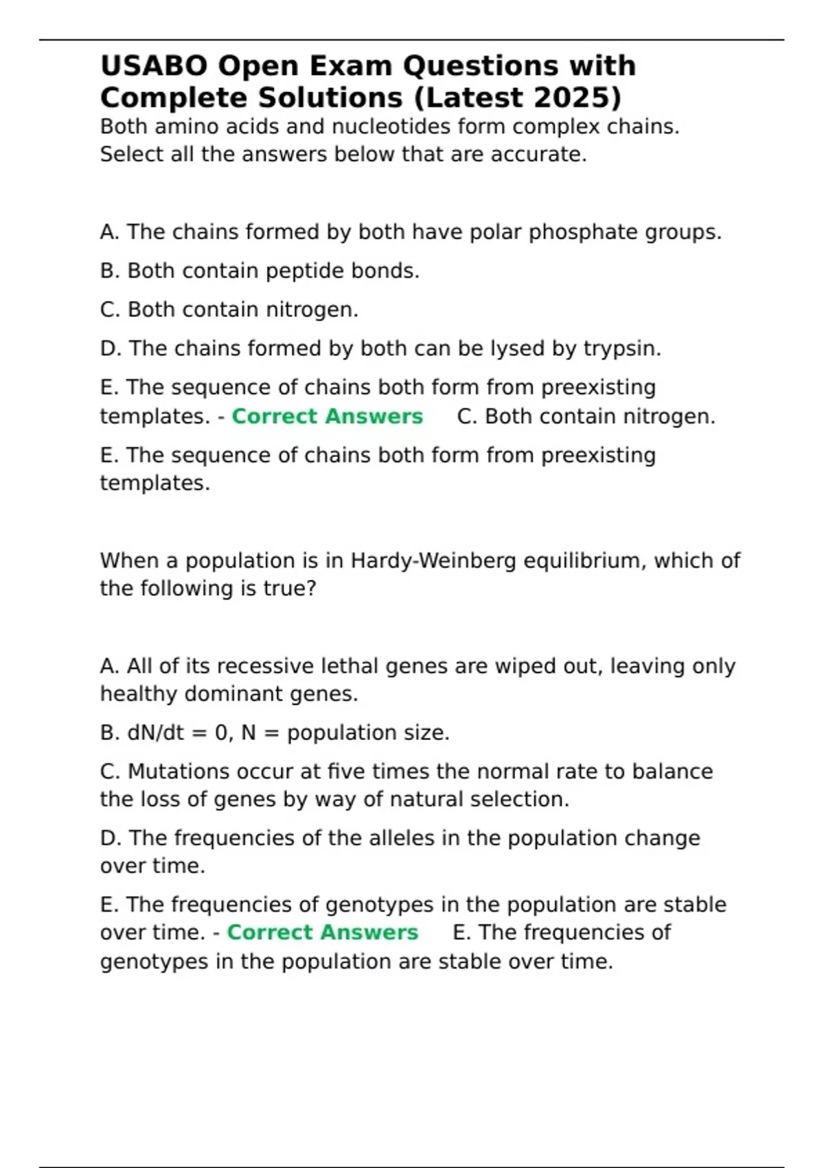 USABO Open Exam Questions w Complete Solutions (Latest 2025).