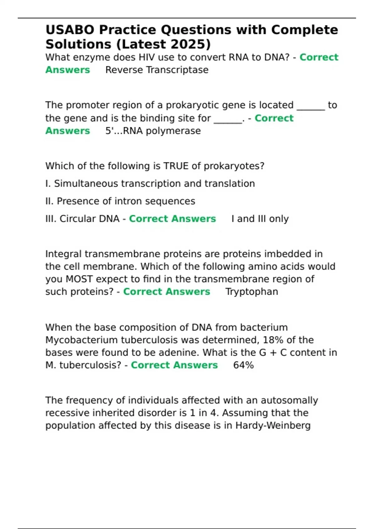 ,USABO Practice Questions with Complete