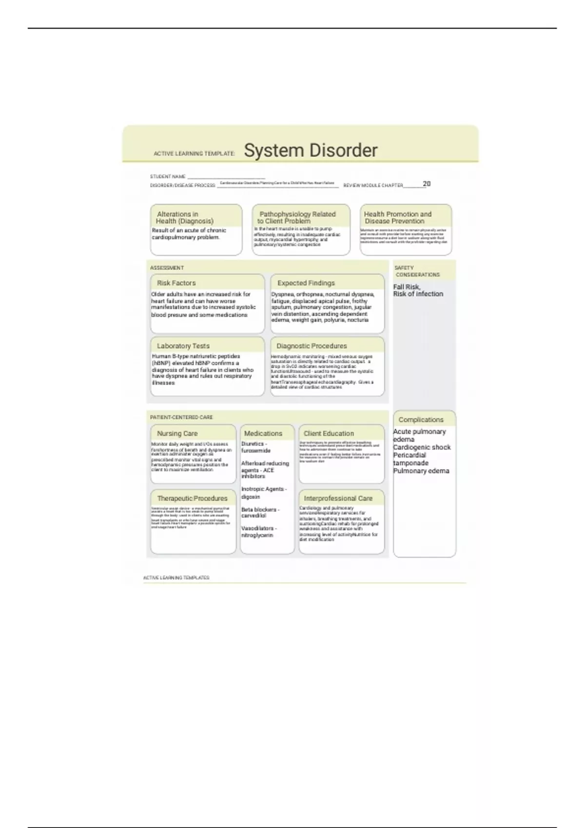 cardiopulmonary problem. output, myocardial hypertrophy, and regimenconsume a diet low in sodium along with fluid