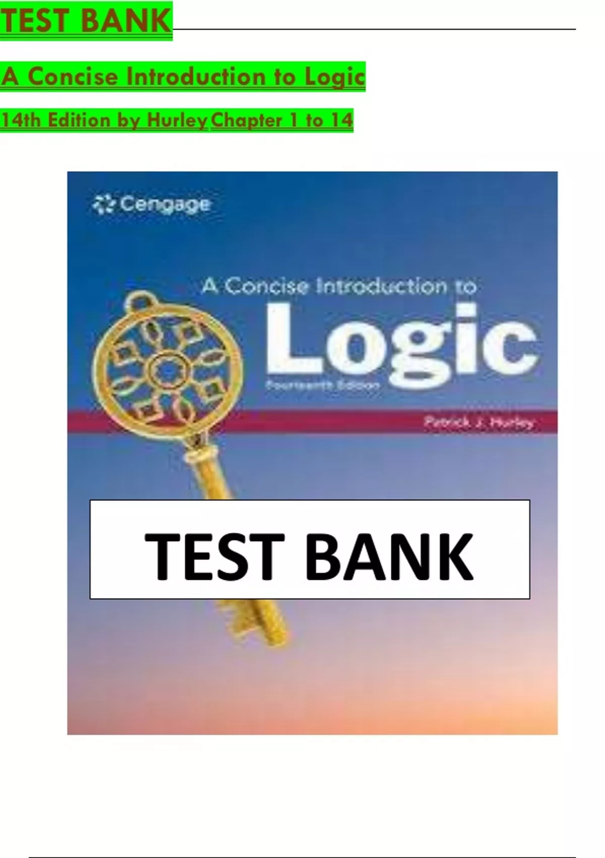Test Bank For A Concise Introduction to Logic 14th Edition by Patrick J. Hurley Chapter 1-14