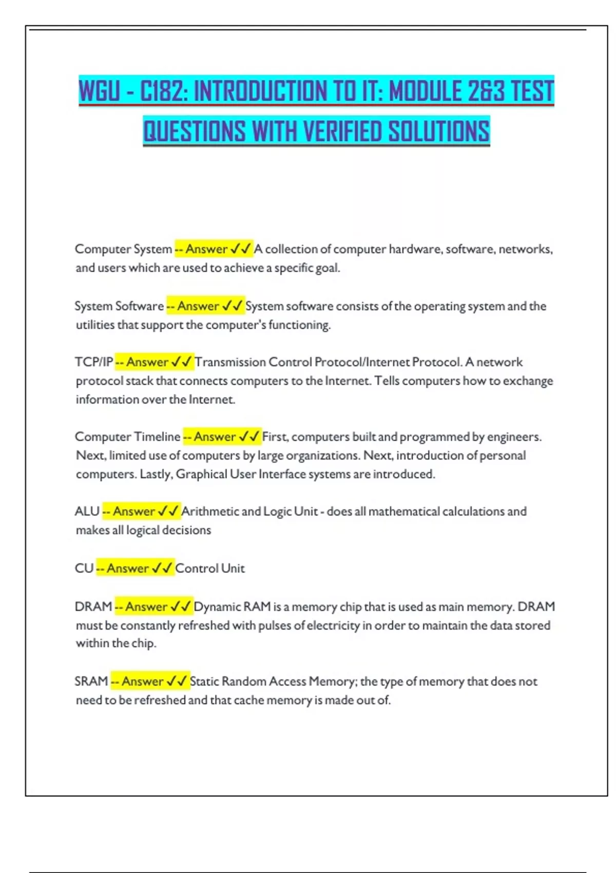 WGU - C182 MODULE 2 & 3 TEST QUESTIONS WITH VERIFIED SOLUTIONS.