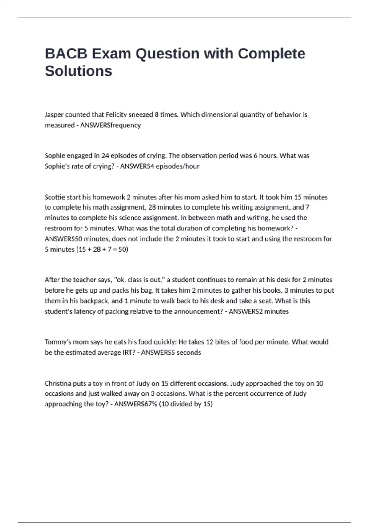 ANSWERS50 minutes, does not include the 2 minutes it took to start and using the restroom for