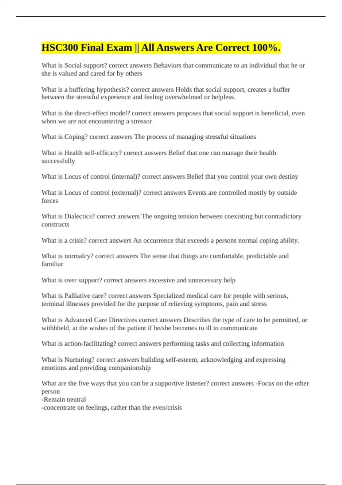 HSC300 Final Exam || All Answers Are Correct 100%.