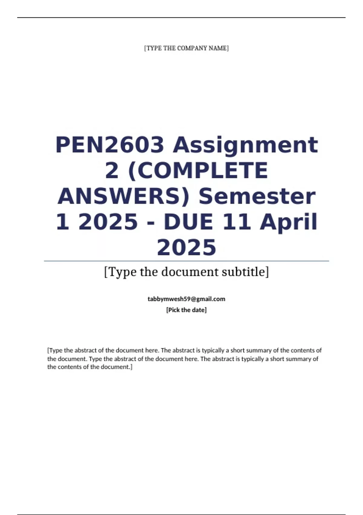 PEN2603 Assignment 2 (ANSWERS) Semester 1 2025 - DISTINCTION