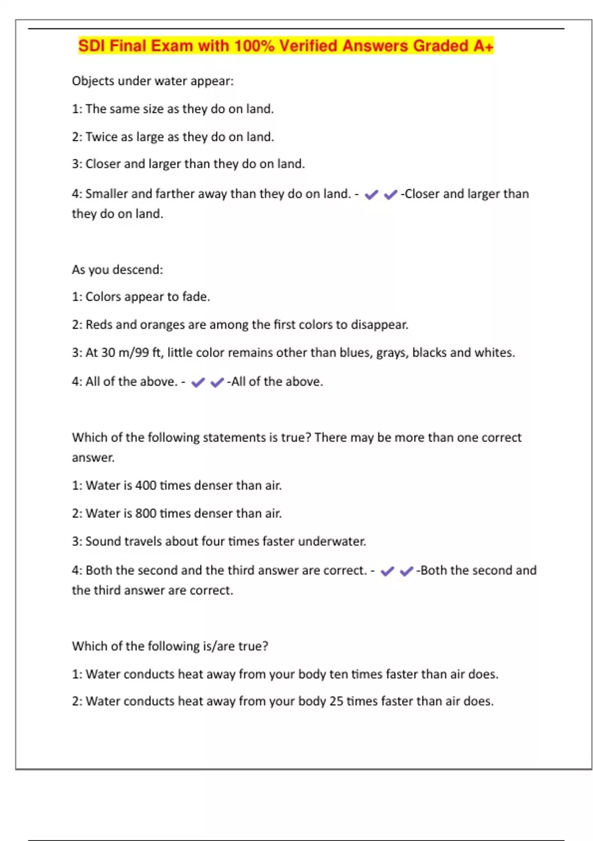 , SDI Final Exam with 100% Verified Answers Graded A+