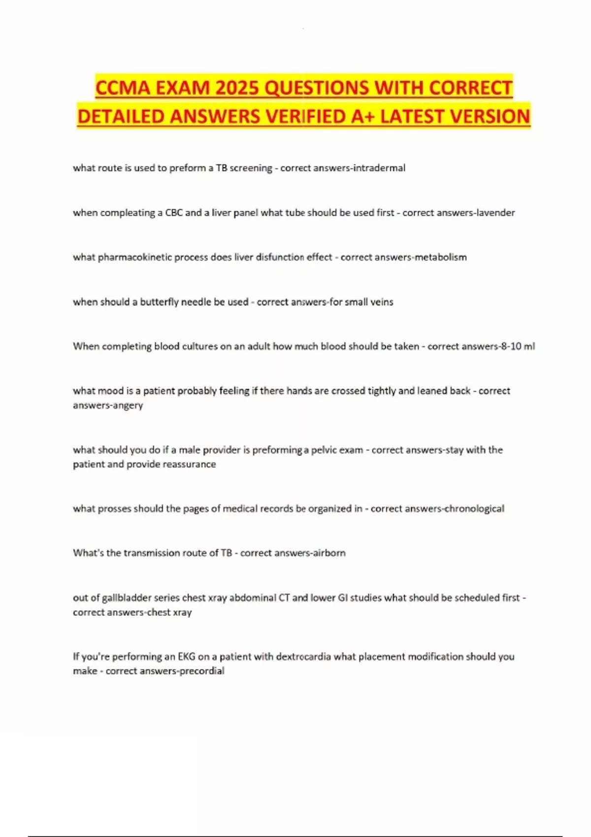 CCMA EXAM 2025 QUESTIONS WITH CORRECT DETAILED ANSWERS VERIFIED A+ LATEST VERSION