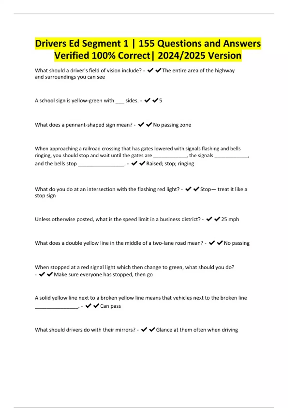 Drivers Ed Segment 1 | 155 Questions and Answers
