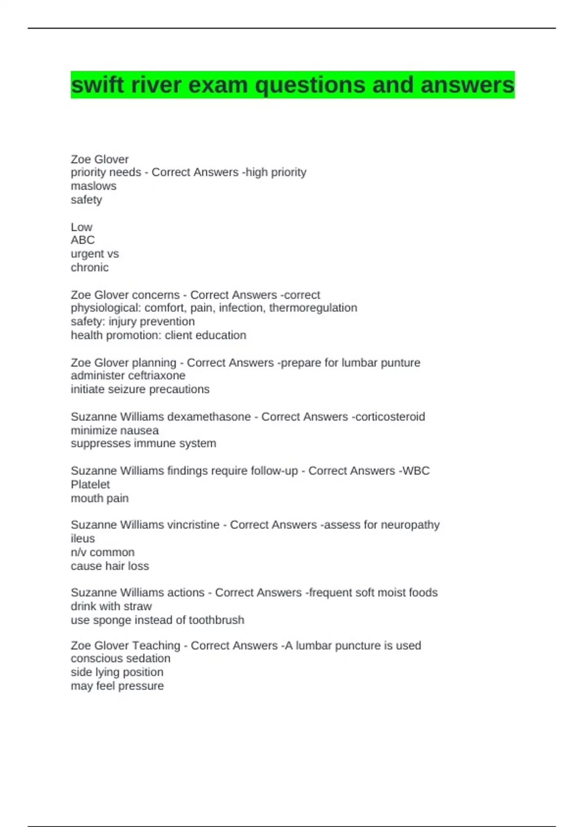 Zoe Glover Teaching - Correct Answers -A lumbar puncture is used