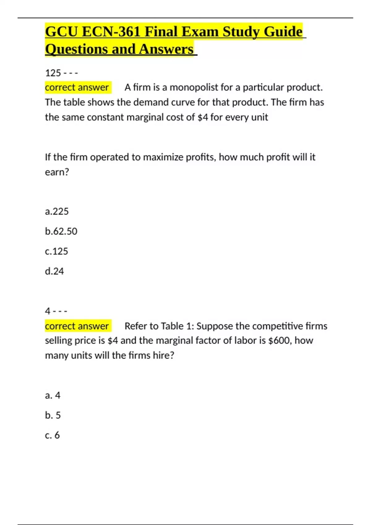 correct answer ✅Refer to Table 1: Suppose the competitive firms