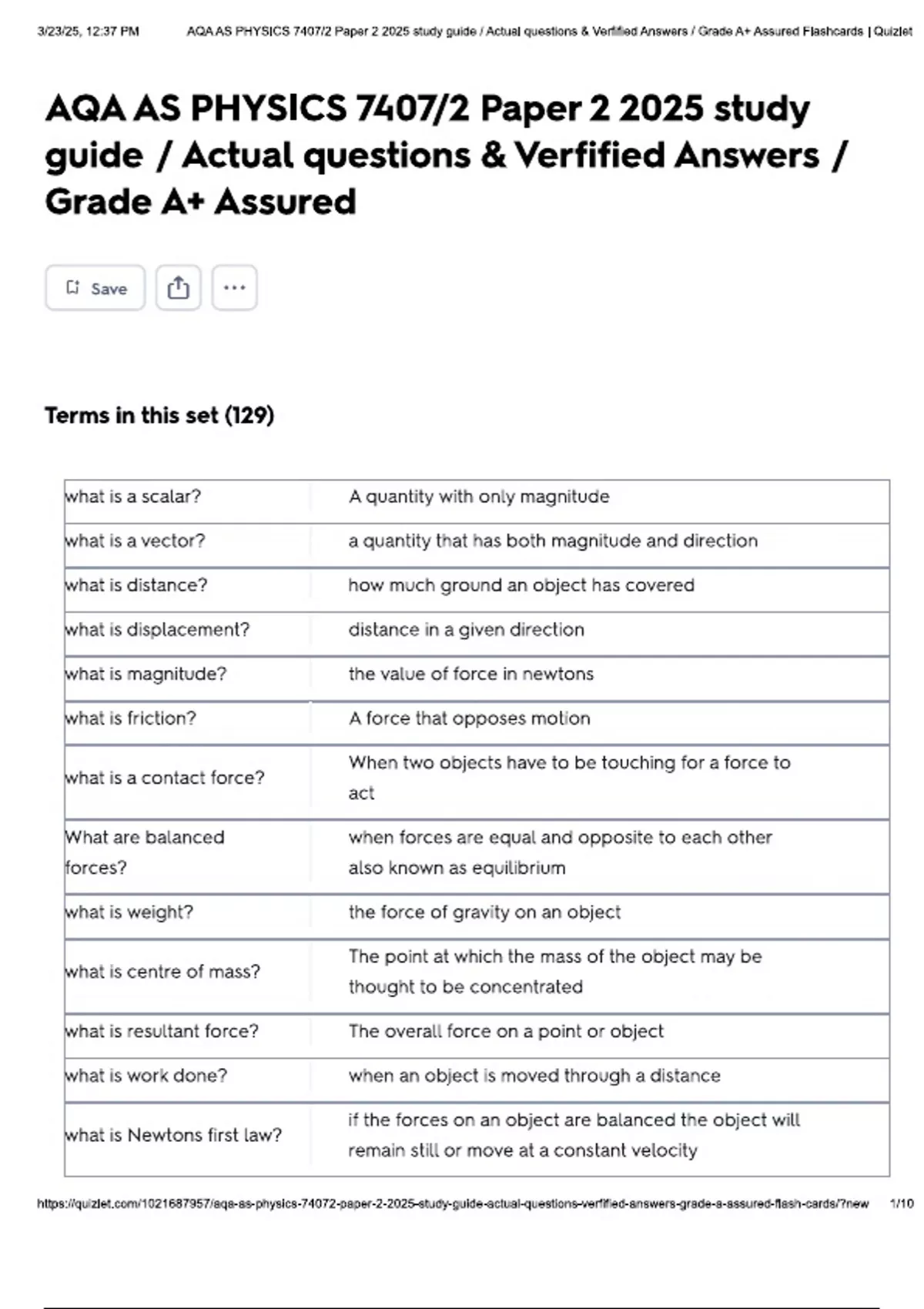 AQA AS PHYSICS 7407/2 Paper 2 2025 study guide / Actual questions & Verified Answers / Grade A+ Assured