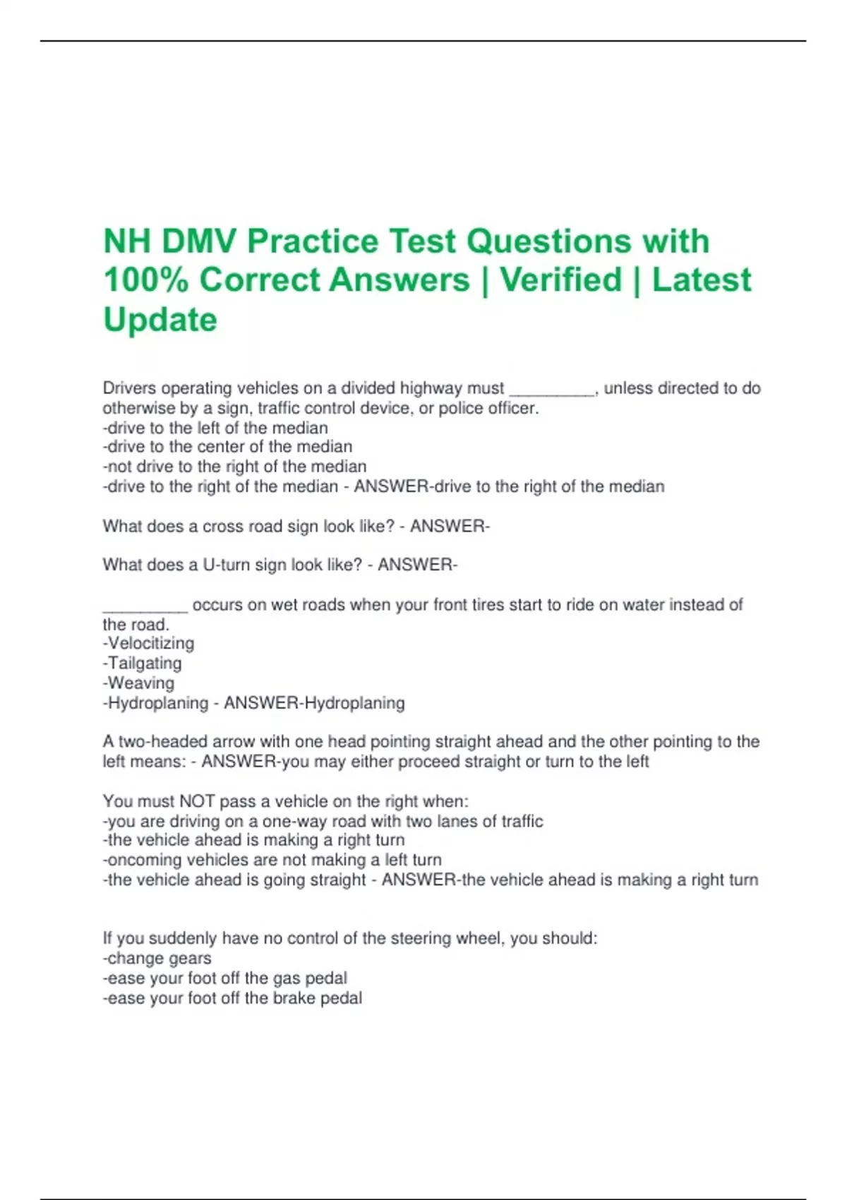 NH DMV Practice Test Questions with 100% Correct Answers | Verified | Latest Update